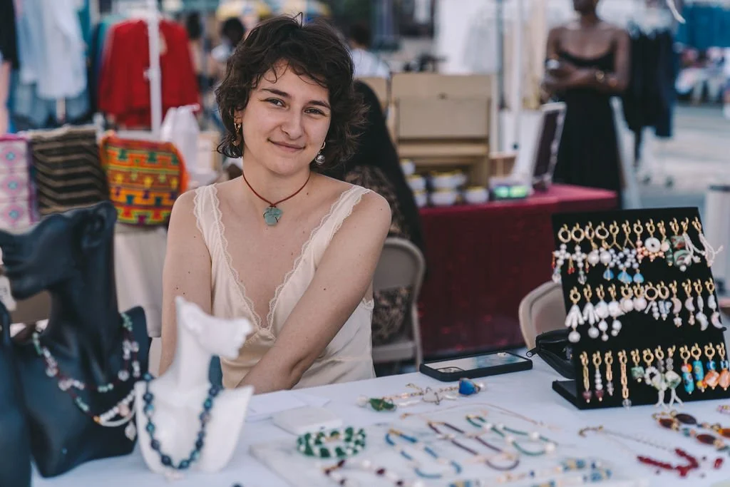 Meet Gen. Genevive Raftry is the one-woman show behind the Queens-based jewelry labl, Eden's Harvest, where precious stones and precious stories make every piece. Gen is the owner, designer, and singular crafter of every item you've seen presented week after week at the Hester Street Fair. Informed by nature and using natural materials, Gen has been steady with us since 2020 and has since progressed her business beyond a side hustle to now running her business as her full-time focus.